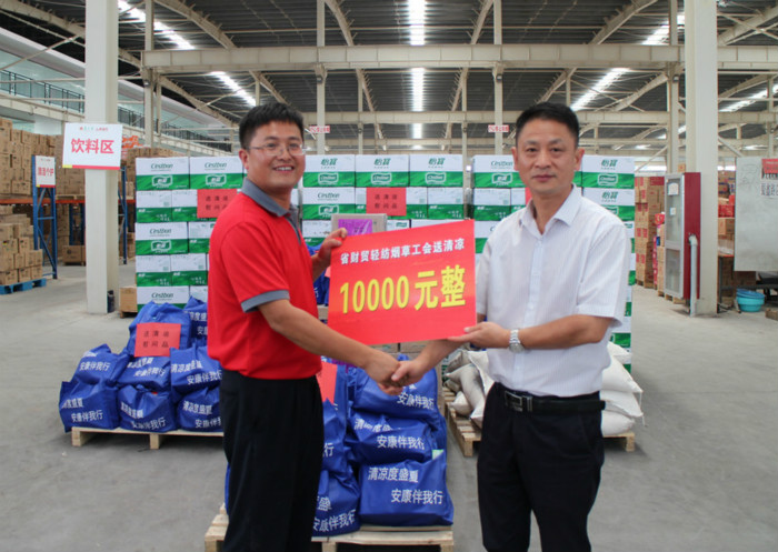 8月9日下午,省财贸轻纺烟草工会主席张鹰一行来到安徽商之都红府超市物流中心,为盛夏中仍然奋战在一线的员工们带去了清凉解暑的慰问品及1万元的慰问金。安徽商之都总经理助理、工会副主席徐长水等陪同慰问。