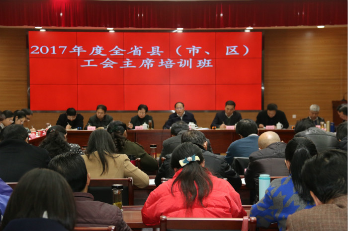 为认真学习贯彻党的十九大精神,切实加强基层工会组织建设,进一步提升县(市、区)工会工作整体水平,12月10日至16日,2017年度全省县(市、区)工会主席培训班在省总工会干校举办,省总党组书记、副主席徐建在培训班上为全体学员授课并全程参加座谈讨论。来自全省16个市共71名县(市、区)工会主席参加本期培训。