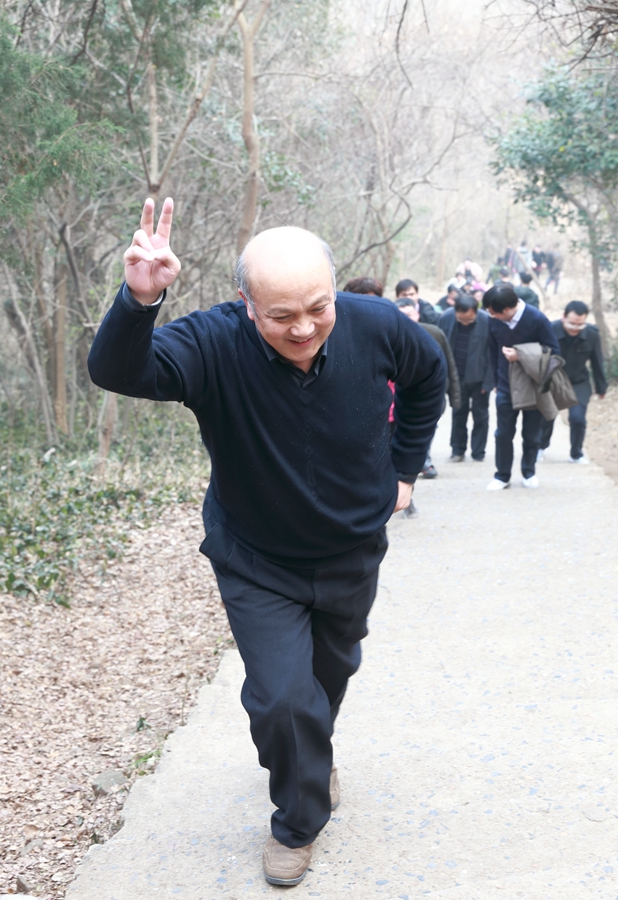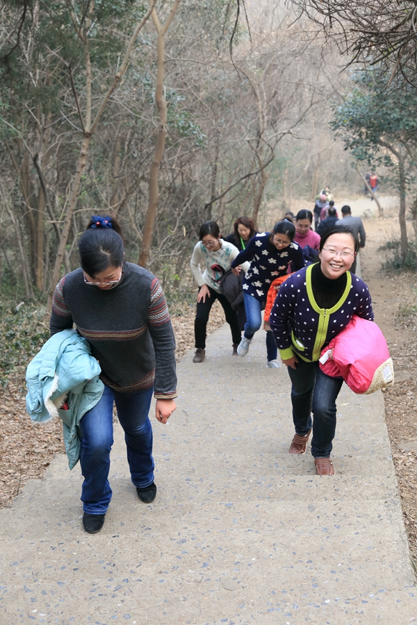 此次登山比赛根据年龄层次设置了女子青年组、男子青年组,女子中年组、男子中年组四个组别。下午三点钟,登山活动正式开始,在举行了简短的比赛仪式后,伴随着许晓东宣布比赛开始的一声令下,全体参赛队员分四组从大蜀山山脚出发,沿着山路向终点进发。大蜀山山势不高,坡道平缓宽敞,十分适合登山远足。一路上大家或欢声笑语,或喁喁交谈,时而驻足观景拍照,时而竞相比赛,无论是老职工,还是入职不久的新同志,大家都兴致勃勃、情趣盎然。参赛队员相互鼓励、相互支持,历经半个多小时地攀爬,成功到达终点。站在大蜀山山顶,眺望四周,豁然开朗,大家领略“城绕青山山抱树,林幽深处有人家”的意境,交流着登山的体会,闲聊着对大自然的感悟,爽朗的笑声、胜利的欢呼声在山林中阵阵飘荡。